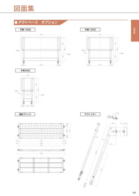 ■アクトベースオプション手摺1500手摺1000手摺500連結ブリッジアウトリガー170