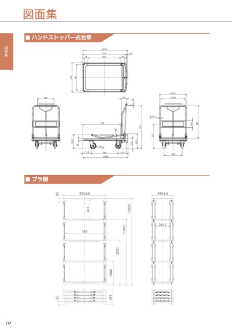 図面集図面集■ハンドストッパー式台車■プラ棚197