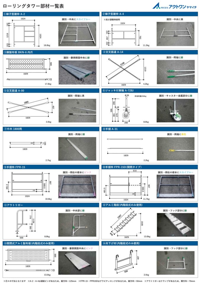 | 作業床寸法 長さ mm | 1,829 | 1,829 | 1,829 | 1,829 | 1,829 | 1,829 | 1,829 | 1,829 | 1,829 |