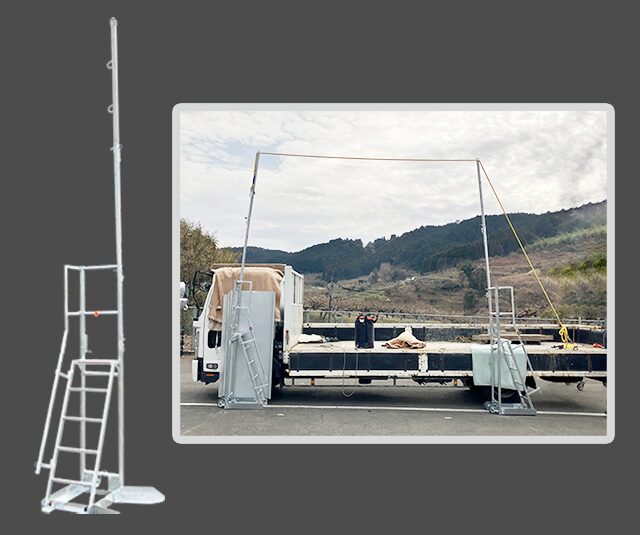 昇降用の階段が一体式のトラック用親綱支柱です。